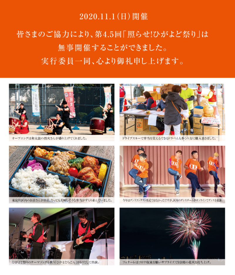 2020年11月1日に開催いたしました「第4.5回照らせ!ひがよど祭り」には、区民の皆様から多大なご協力をいただきありがとうございます。